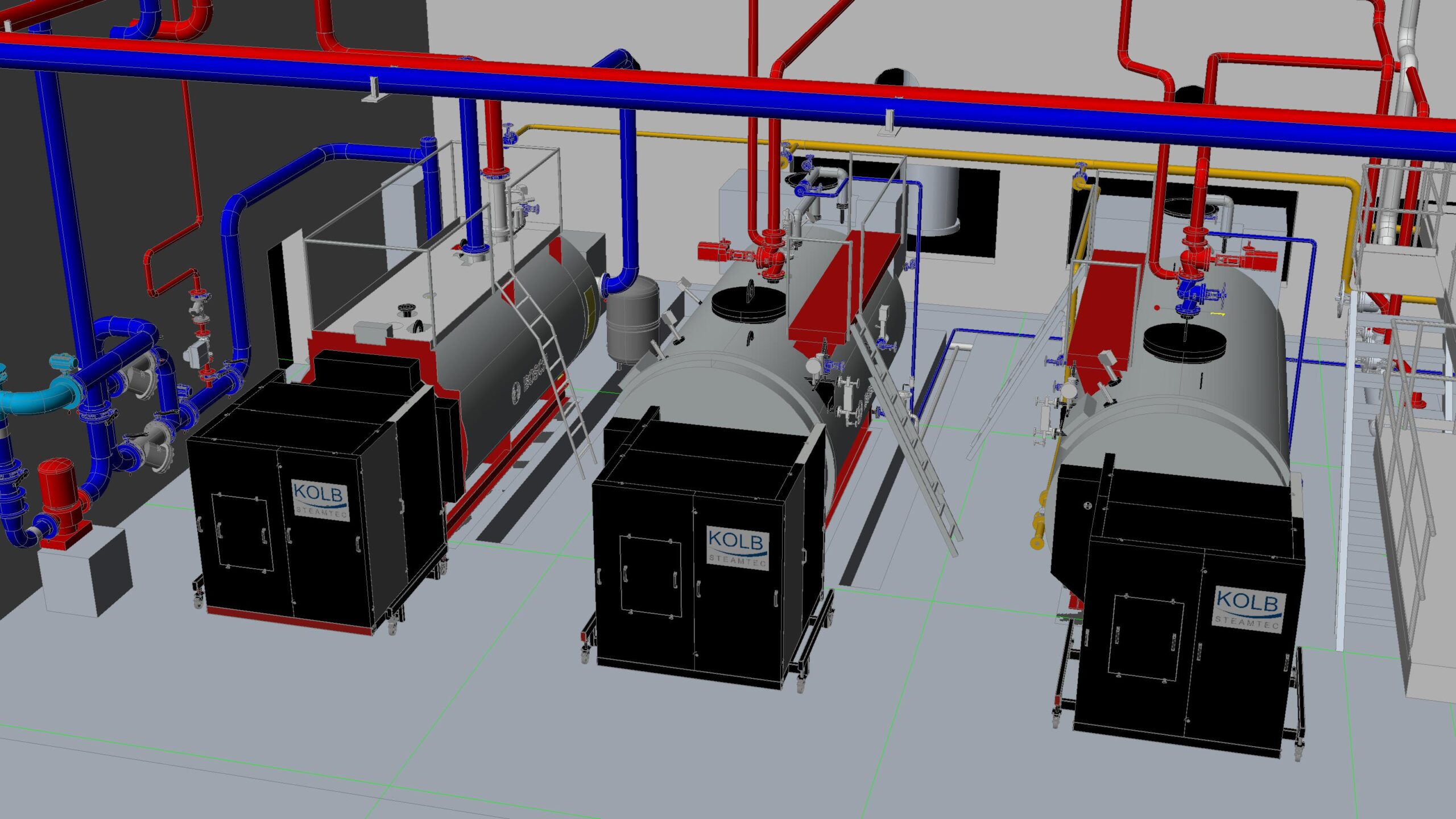 Aus der Punktwolke entsteht im CAD Ihre neue Anlage. Wir integrieren Kessel, Brenner und Peripherie passgenau in den Bestand und prüfen Machbarkeit sowie Wartungszugänglichkeit virtuell.