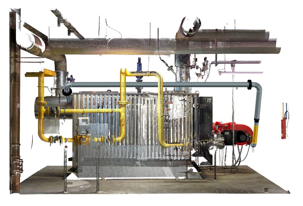 Das Ergebnis ist ein “Digital Twin” Ihrer Anlage. Unsere Konstrukteure planen Ihre neue Kesselanlage direkt in diese Punktwolke hinein. Kollisionen mit bestehenden Trägern, Lüftungskanälen oder Rohrleitungen werden so bereits am Bildschirm erkannt und gelöst – nicht erst auf der Baustelle.