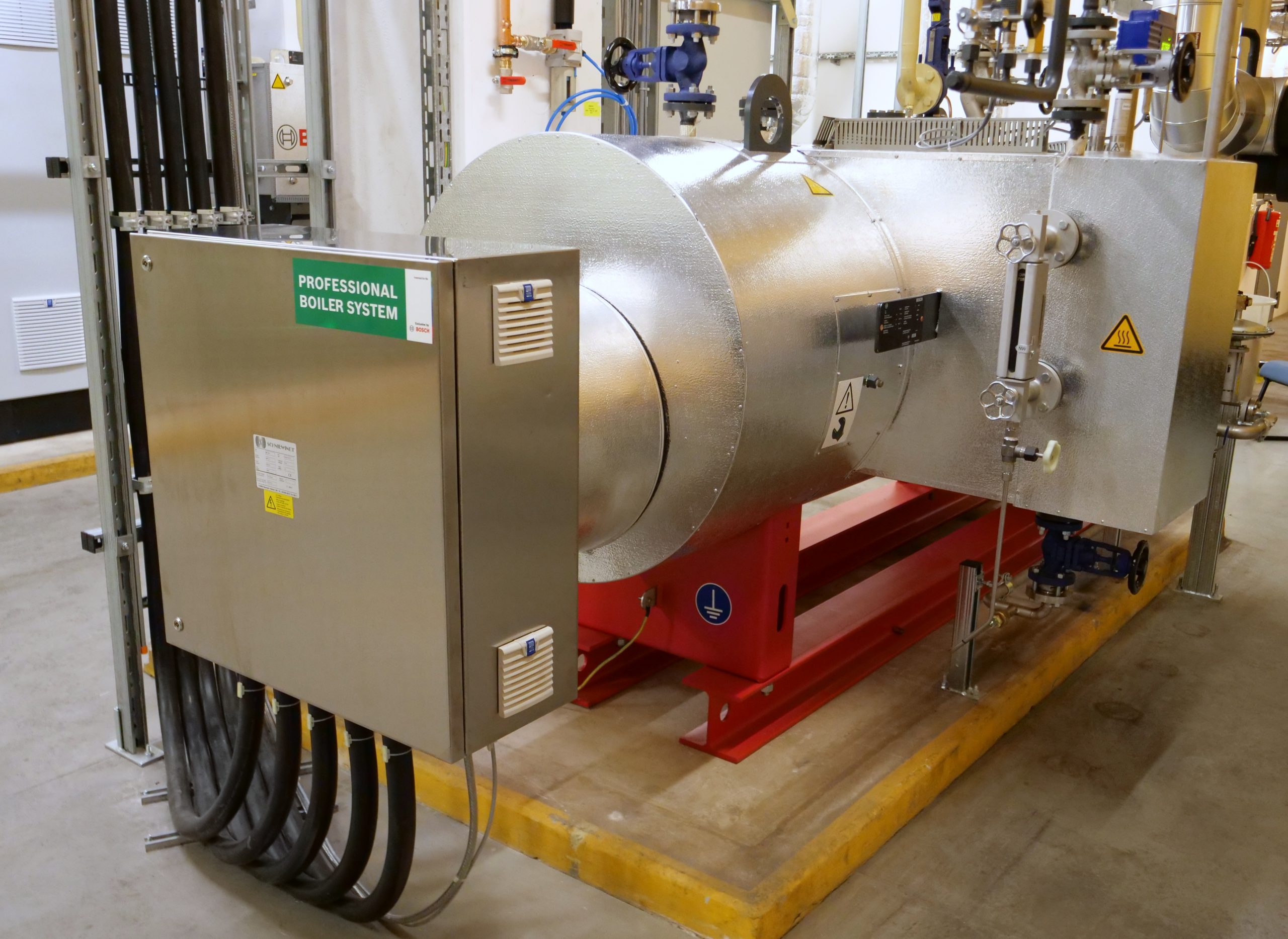 Wir integrieren elektrische Heizelemente in Ihren bestehenden Kessel (sofern Flansche vorhanden) oder installieren separate Elektro-Dampferzeuger als Hybrid-Ergänzung. Diese Systeme reagieren extrem schnell auf Lastschwankungen und fahren emissionsfrei.